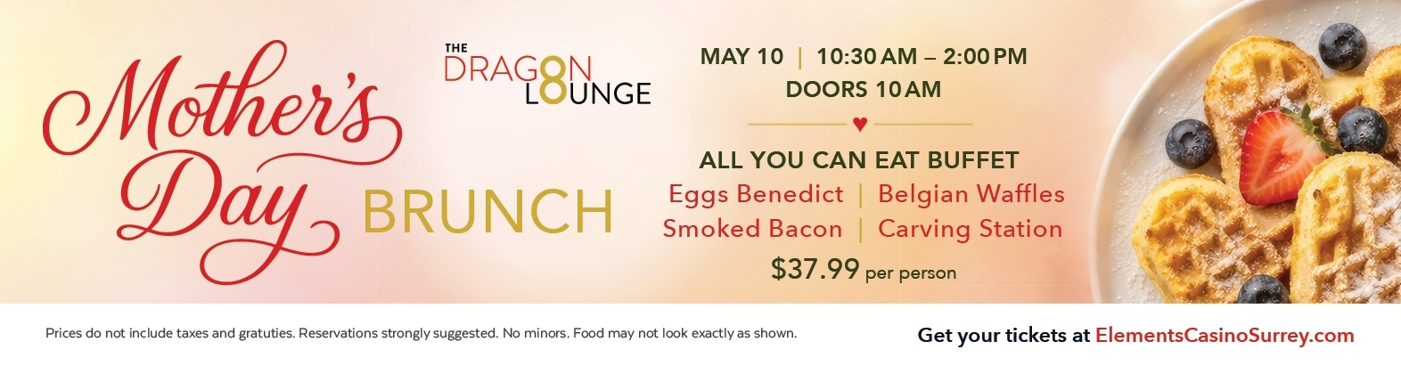 Join us for a memorable and delicious celebration, where the ambiance is warm, the food is exceptional, and the company is cherished. Let us help you create lasting memories and make this Mother’s Day truly special at Elements Casino Surrey!